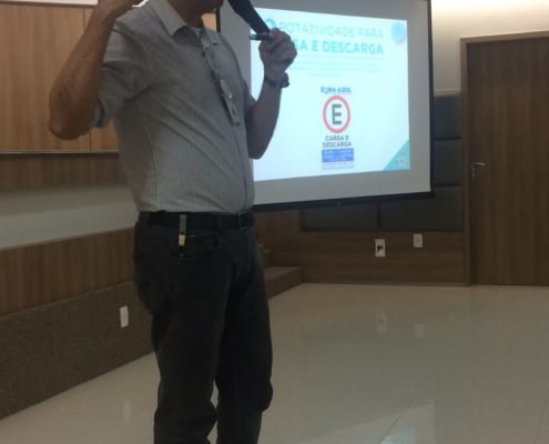 Os srs. André Luiz e Guilherme Lima, assessores técnicos da AMC, abordaram a Nova ZONA AZUL para carga e descarga no município de Fortaleza.