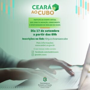 O Ceará ao Cubo é totalmente gratuito e será transmitido pelo YouTube da Sedet. Tem o apoio institucional do Sebrae Ceará. Participe!