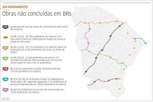 Fortaleza. Enquanto o Ceará necessita de um investimento em torno de R$ 2 bilhões para expandir e recuperar a malha viária, o Estado termina o ano com menos investimento do que o aplicado em 2015, que foi da ordem de R$ 1,3 bilhão. Das oito rodovias federais que sofreram intervenção neste ano, apenas um trecho foi concluído, que está localizado na BR-402. Com relação as estradas estaduais, o governo investiu quase igual quantia do que ocorreu no ano passado. Em 2015, os gastos com manutenção e expansão somaram R$ 605 milhões. Em 2016, foi um total de R$ 605,6 milhões.